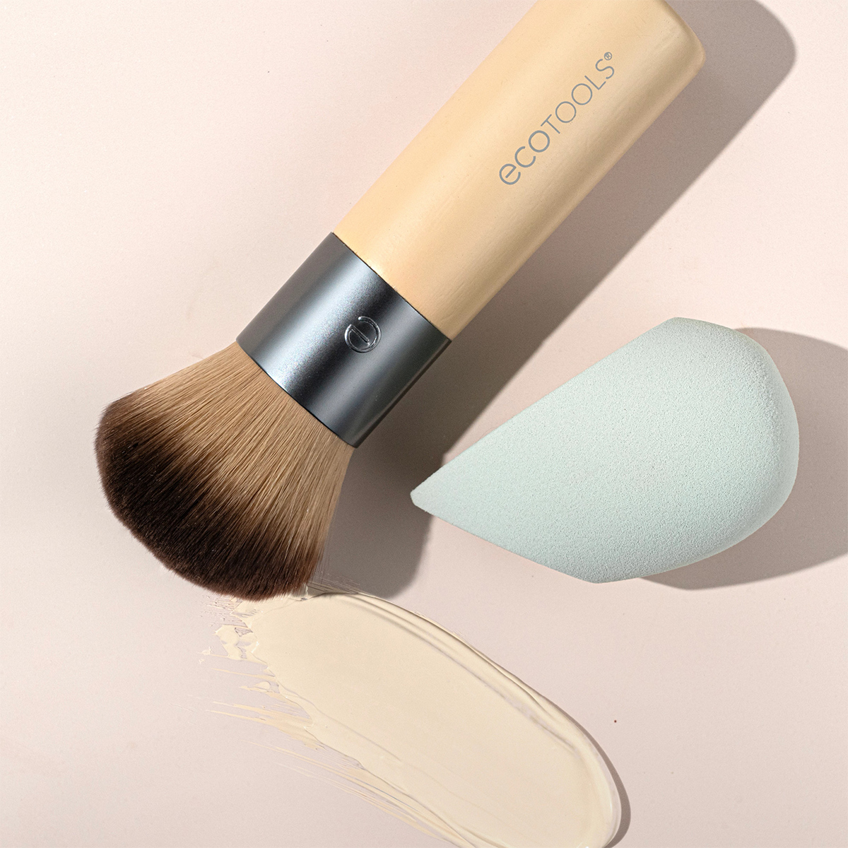 EcoTools Blend + Blur Duo – дуэт кисти и спонжа для безупречного тона лица. В наборе – компактная пушистая кисть для тона Full Complexion с эффектом аэрографа и новый ультрамягкий спонж Blurring Blender для естественной растушевки с полуматовым финишем. Бьюти-инструменты подходят для работы с жидкими и кремовыми тональными основами, румянами, консилерами и скульптурирующими средствами.