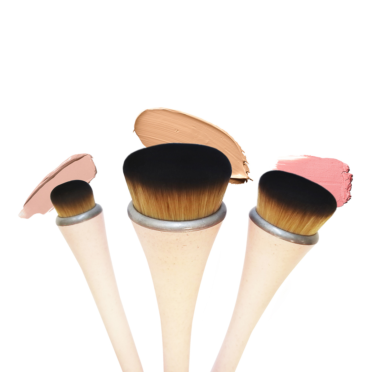 Набор кистей с плоским срезом и плотным ворсом поможет добиться идеального тона буквально в 3 шага! В наборе: