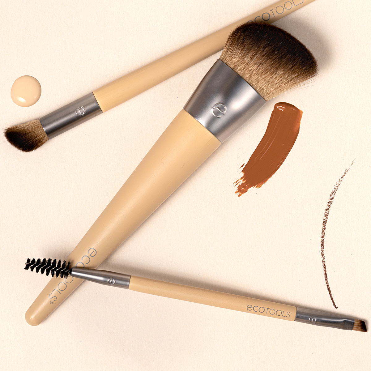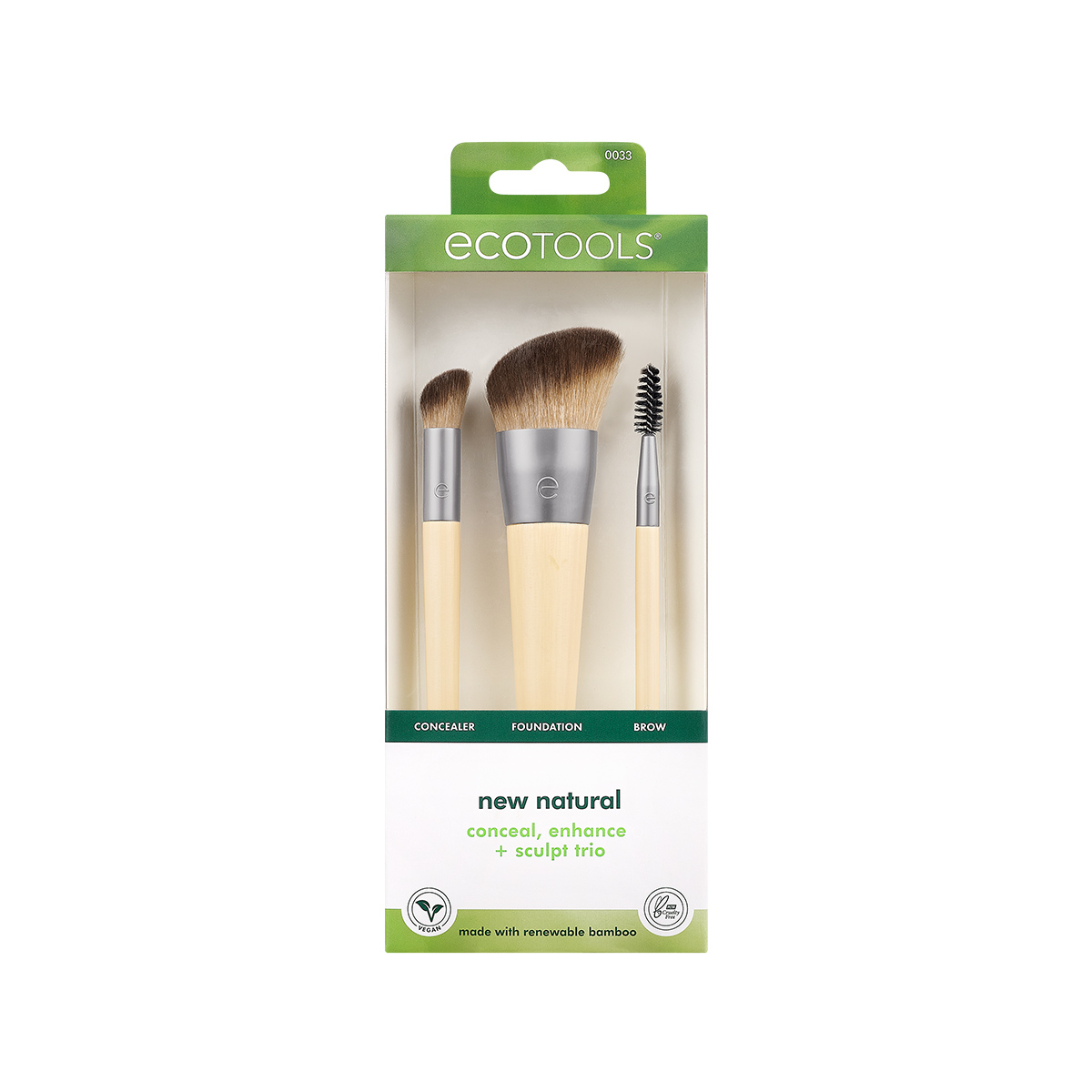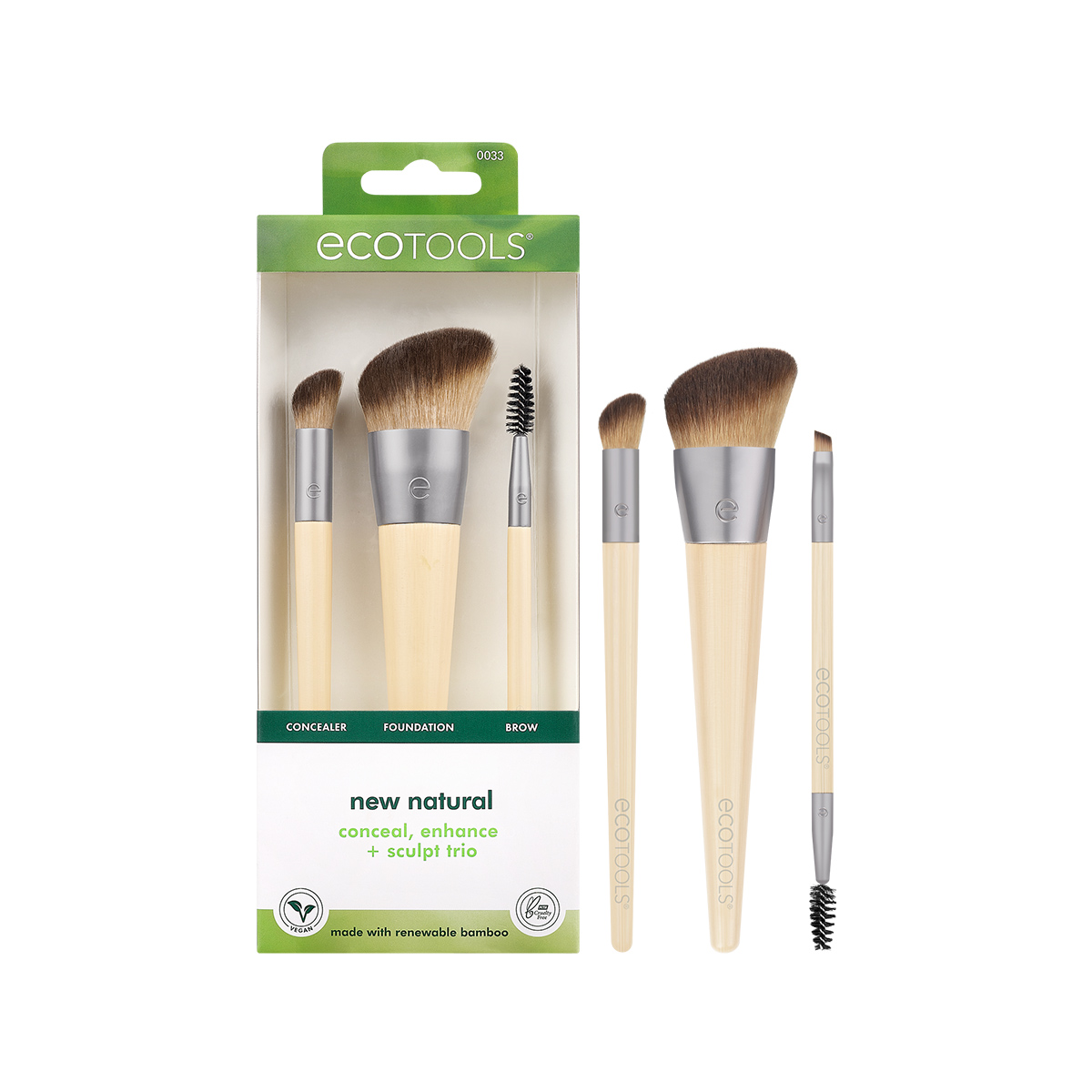EcoTools New Natural Conceal, Enhance & Sculpt Trio – базовый набор для легкого и быстрого макияжа на каждый день. Плотно набитый ворс легко растушевывает жидкие и кремовые продукты, а удобная скошенная форма кистей позволяет без труда проработать любую зону лица. Внутри: