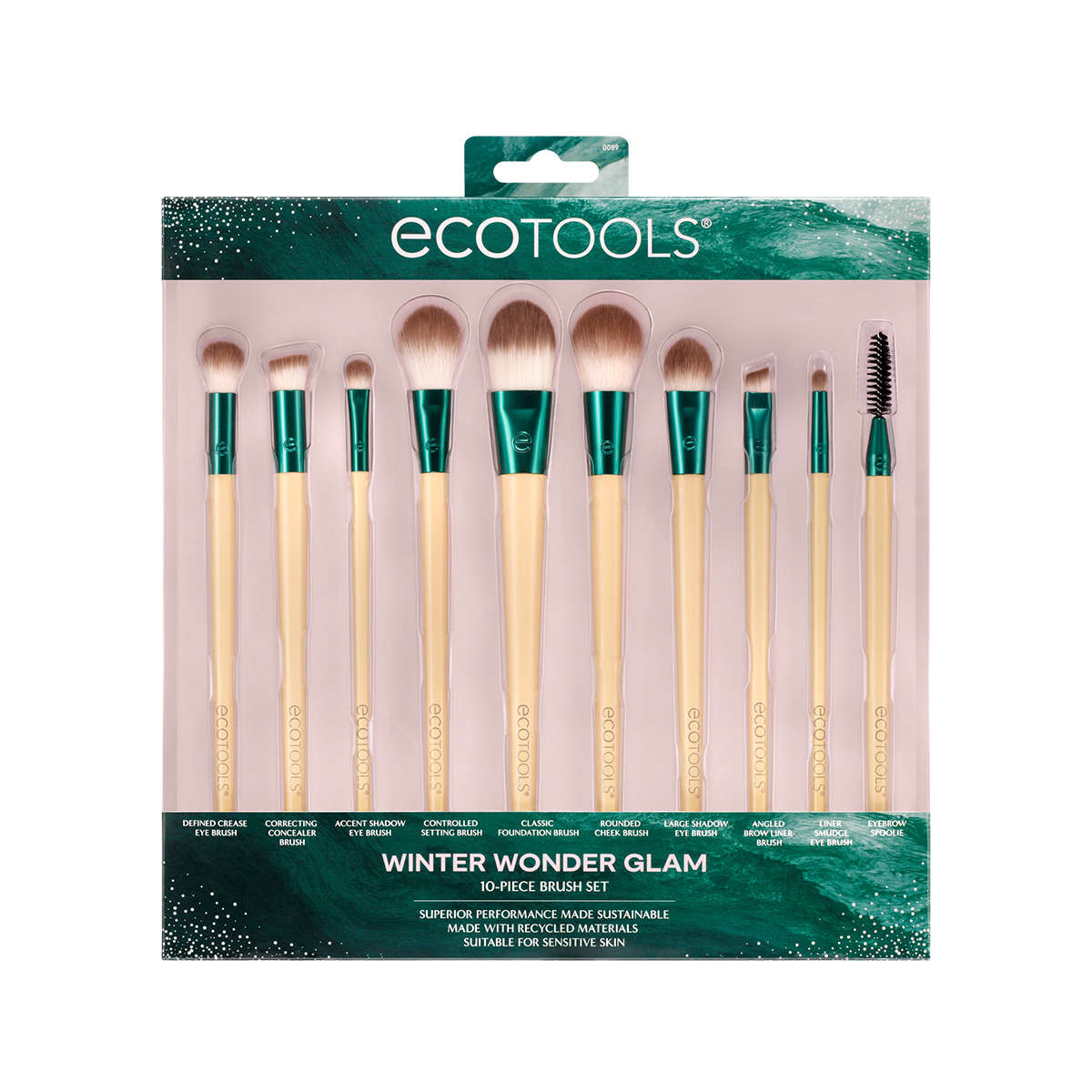 Блистайте в праздничном сезоне с ярким мейкапом, навеянным сказочной атмосферой. С набором EcoTools Winter Wonder Glam можно с легкостью создать как естественный, так и яркий вечерний макияж. В наборе 10 кистей: