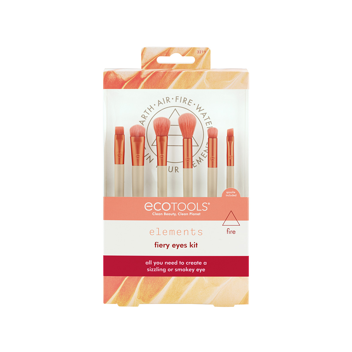 EcoTools Elements — лимитированная коллекция эко-френдли инструментов для макияжа, вдохновленная природными стихиями: огнем, водой, землей и воздухом. С набором кистей EcoTools Elements Fiery Eyes Kit, олицетворяющим стихию огня, вы с легкостью сможете создать безупречный драматичный макияж глаз в технике смоки айс. Внутри: