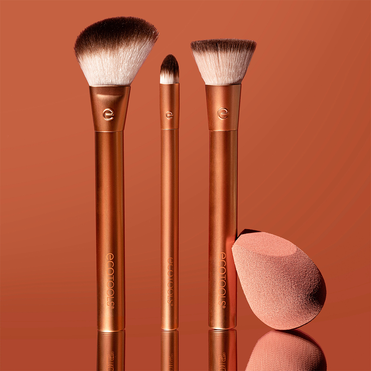EcoTools Precious Metals — коллекция экологичных инструментов для макияжа, вдохновленная красотой и уникальностью природных металлов. Все кисти коллекции изготовлены из переработанного синтетического ворса, а ручки кистей на 60% состоят из вторичного алюминия. Универсальный набор Precious Metals Face Blend + Sculpt включает в себя спонж и 3 базовые кисти для макияжа в металлизированном корпусе. Идеальный вариант для знакомства с брендом: