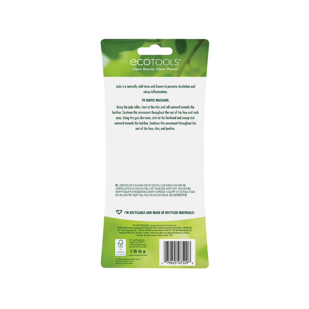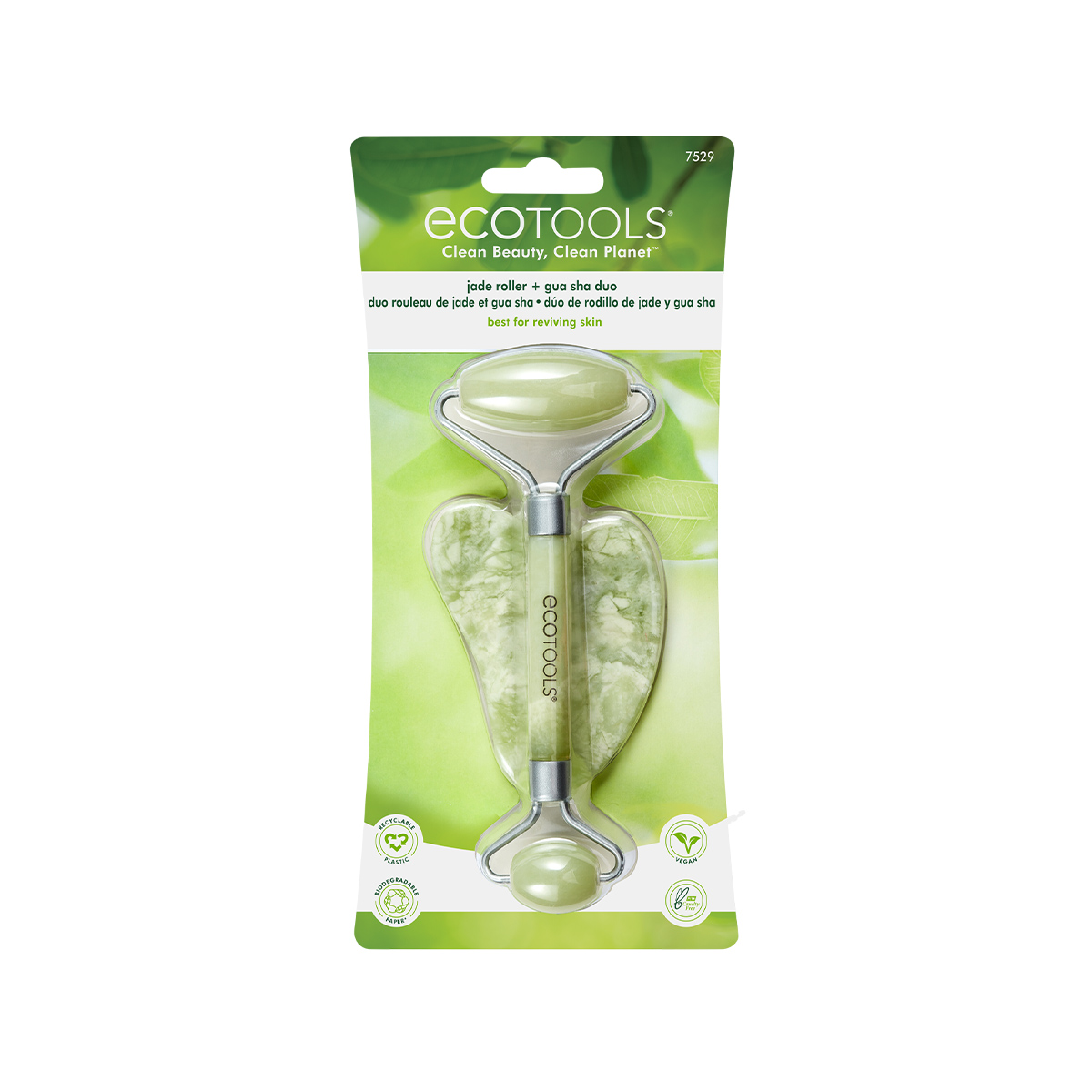 Мини-роллер для лица и скребок гуаша EcoTools Jade Roller + Guasua Stone Duo из 100% нефрита – идеальный дуэт для красивой и сияющей кожи всего за несколько движений!
